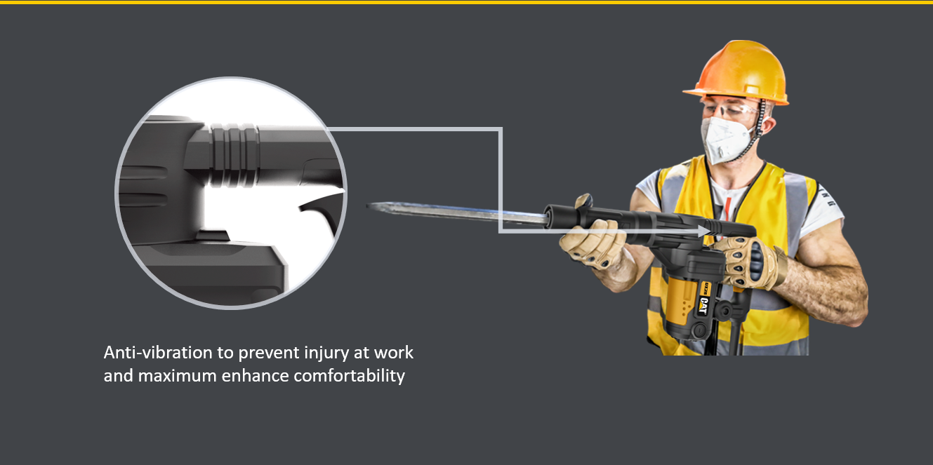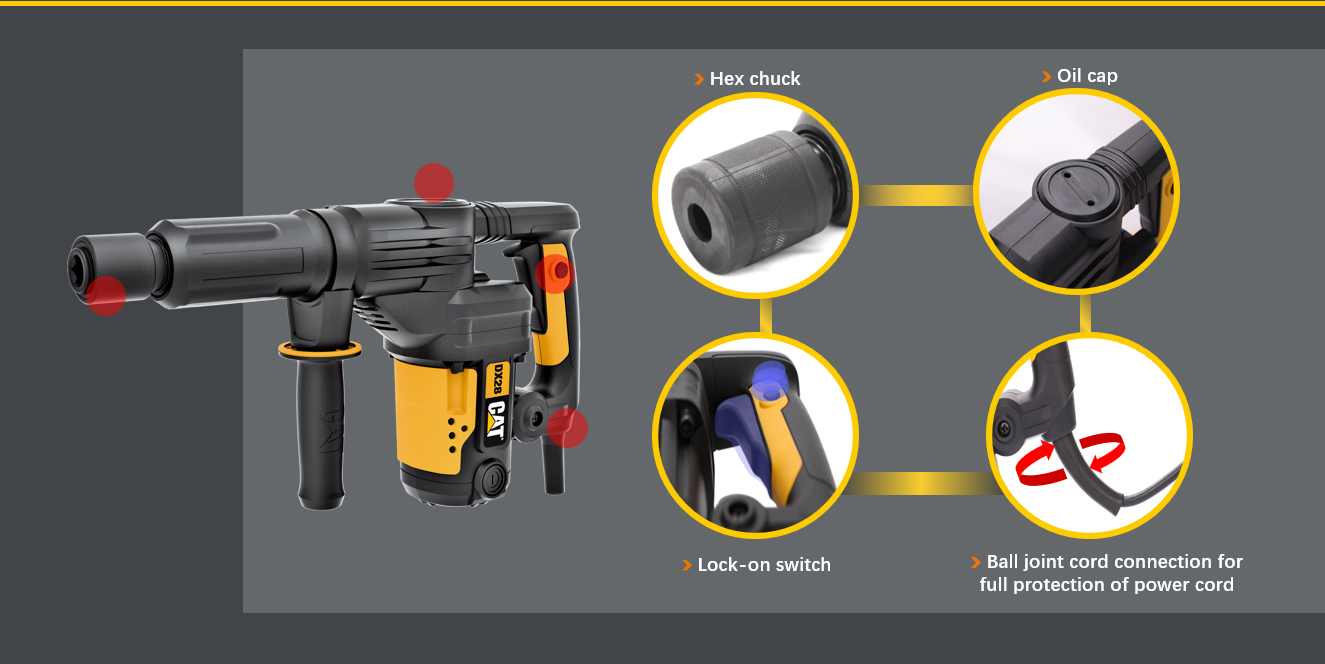 The CAT DX28 Hammer is engineered for heavy-duty demolition and construction tasks, offering professional-grade performance with a design built for endurance and comfort. Featuring a powerful motor housed in a lightweight magnesium alloy gear box, the DX28 provides exceptional durability while keeping user fatigue to a minimum, even during prolonged use.